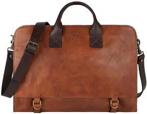 Time Resistance Leather Briefcase for Laptop - Attache Messenger Bag for Men and Women (Cognac)