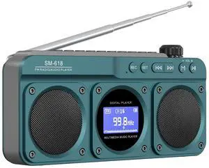 SEMIER Small Digital FM Radio Bluetooth Speaker, Handheld Rechargeable Radio Wireless Speaker, LCD Display, Double Speakers, Headphone Jack, Support USB/Micro SD Card MP3 Play for Home Outdoor (No AM)