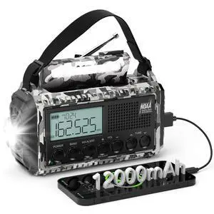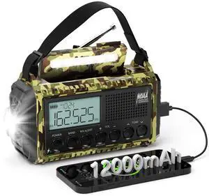 Emergency Weather Radio,12000mAh/44400mWh Solar Hand Crank AUTO NOAA Alert/AM/FM/SW Shortwave Radio with Type-C Charger, Battery Operated Radio,Reading Lamp, SOS & Flashlight for Emergencies