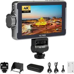 VILTROX DC-550 Pro Touchscreen Camera Field Monitor 4K HDMI (5.5 Inch) DSLR Camera Monitor with Battery Sunshade Hood 3D Lut Peaking Focus Assist 1200 nits 160 Wide View Angle DC 12V Type-C 5V in