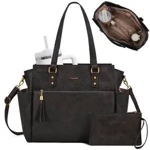 LOVEVOOK Laptop Tote Bag for Women 15.6 Inch Vintage Work Bag with Large Cup Holder, Waterproof Computer Teacher Bag
