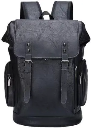 CYLYWJD PU leather casual backpack 15.6 inches travel college work backpack business laptop backpack multi-pocket schoolbag (black3,Backpack)