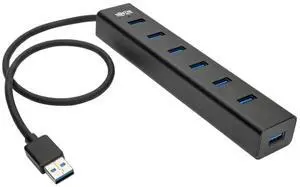 Tripp Lite 7-Port USB-A Mini Hub - USB 3.2 Gen 1, Up to 5 Gigabits per Second, Strong Aluminum Housing, International Plug Adapters for UK, EU, Australia - 1-Year Warranty (U360-007-AL-INT)