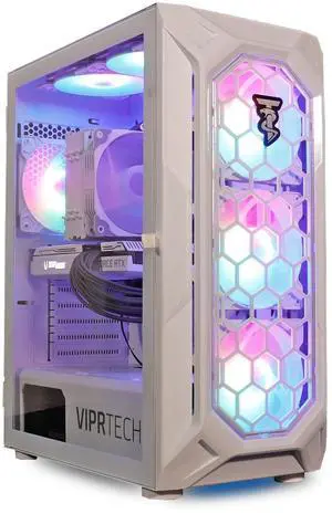 ViprTech Ghost Gaming PC - AMD Ryzen 7 (4.1Ghz Turbo), AMD Radeon RX 580 8GB, 16GB DDR4, 500GB SSD, WiFi Bluetooth, RGB, Windows 11, Desktop Computer Tower Prebuilt, White