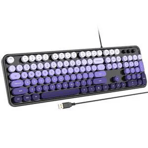 Atelus Computer Keyboard Wired, Retro USB Keyboard with Large Number Pad, Caps Indicators, Foldable Stands, Full Size Typewriter Keyboard for Windows PC Laptop (Black Purple)