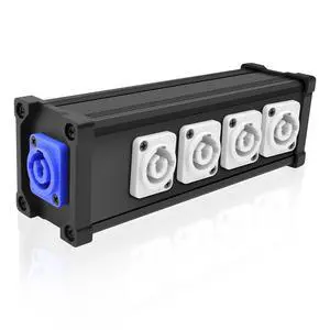 XMSJSIY PowerCon Input to Powercon Output Splitter 1 to 4 Power Distribution Box 4 Channel Multi 1 in 4 Way Out PowerCon Center for LED Screen Beam Moving Head Light, Stage Light Power and More