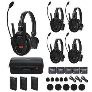SYNCO Xtalk XMax5 Full-Duplex Wireless Intercom System with 5 Double-Ear Headsets (2.4 GHz) Random Master Device Design for Team Communication,Movie Shoot,Live Show Stage Performance (5PCS)