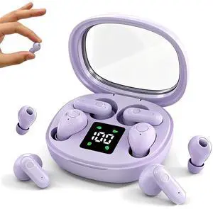 Xmenha Mini Invisible Small Earbuds Set Sleep Ear Buds Purple Wireless Bluetooth for Small Ears Canals Side Sleepers Tiny Micro Low Profile Smallest Hidden Discreet Earbuds 2 Pack Headphones for Work