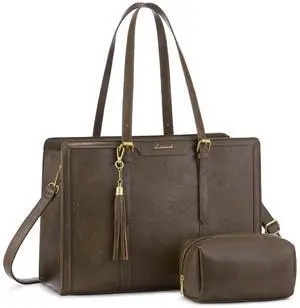LOVEVOOK Laptop Bag for Women Vintage Leather Work Tote 15.6 inch Large Capacity Computer bag with Clutch Purse for Office, Travel, Casual