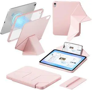 KVTVOU Case for iPad (A16) 11th Generation 2025 11 Inch, for iPad 10th Generation 2022 10.9 Inch, Clear Magnetic Detachable Back Cover & Pencil Holder, Multiple Angles, Auto Sleep/Wake, Pink
