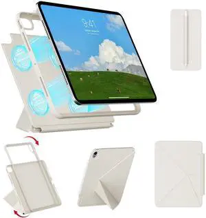 KTGGHG Case for iPad 11-Inch (A16) 11th Generation 2025 & iPad 10.9-Inch 10th Gen 2022, Detachable Magneic Attachment Slim Cover, 360 Rotating Portrait/Landscape Stand, Auto Wake/Sleep, White Cream