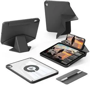 ZOPSGYU Dynamic Folio Case for iPad (A16) 11th/10th Generation (2025/2022), Removable Clear Magnetic Back, 20+ Multi-Angle Stand, Dual Screen Cover ^^ Strong Attachment ^^ Detachable Clasp, Black