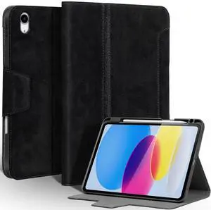 Gexmil Leather Case for iPad (A16) 11th Generation 11 Inch 2025, iPad 10th Generation 10.9 Inch 2022,Protective Cover with Pencil Holder,Magnetic Closure,Auto Sleep/Wake,Sanded Black