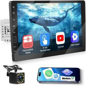 AM Radio 9 Inch Single Din Car Radio with Wireless Carplay Android Auto,IPS Touch Screen Car Stereo with Mirror Link, Car Radio Support Bluetooth Handsfree FM/RDS Stereo Online Video EQ USB SWC
