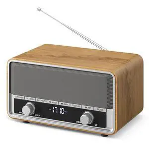 Vintage Wood AM FM Bluetooth Radio with Clock, Digital Clock Radio for Bedroom with LCD Display ^^ 40 Presets ^^ Sleep Timer ^^ No Alarm, Retro Bluetooth Speaker for Office, Kitchen (Light Walnut)