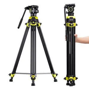 Cayer BV01 Compact Video Tripod with Fluid Head - 65" Heavy Duty Tripod with 360 Video Head, Lightweight Aluminum Travel Tripods with QR Plate, Load up to 13.2 lb for DSLR, Camcorder, Camera