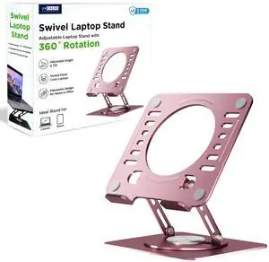 Uncaged Ergonomics Swivel Laptop Stand for Desk, Adjustable Computer iPad Stand for Desk w/ 360 Rotation, Portable Laptop Holder for Home Office Ergonomic Supplies (Rose Gold)