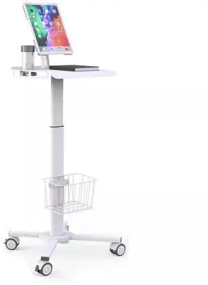 Mount Plus C01 Height Adjustable Mobile Medical Tablet Cart with Wheels and Tablet Enclosure Basket Storage ^^ Medical Trolley for Hospital Clinic Beauty Salon ^^ Pneumatic Mobile iPad Workstation