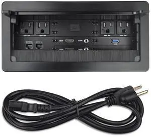 Tabletop Multimedia Connectivity Box with 4 AC Power+2 HDMI+2 RJ45+1 USB3.0 Port +1 USB-C +2 Audio with 5.58ft Power Cord for Conference Room Office Desk(Black)