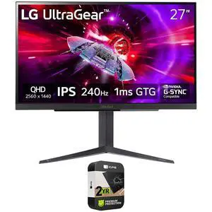 LG 27GR83Q-B 27 inch Ultragear QHD 1ms 240Hz Gaming Monitor Bundle with 2 YR CPS Enhanced Protection Pack