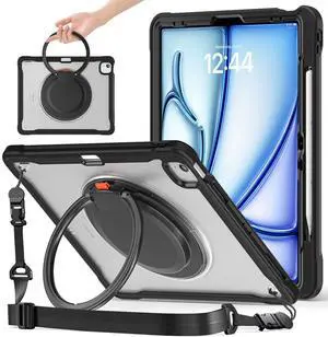 ACEMO for iPad Air 13 inch Case M3/M2 iPad Pro 12.9 case 6th 5th 4th 3rd Generation with 360 Rotating Kickstand Handle, Shoulder Strap, Pencil Holder, Rugged Cover for iPad Air 13 2025 2024, Black
