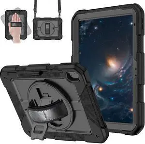 MENZO Case for iPad A16 11th Generation 11 Inch 2025, iPad 10th Gen 2022 10.9 inch, 360 Rotating Stand, Built-in Pencil Holder, Convenient Hand and Shoulder Strap, Durable Shockproof, Black