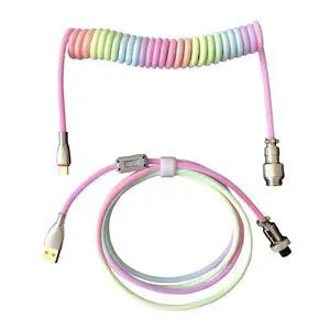MICOMAKA Custom Double-Sleeved Mechanical Keyboard Cable, Handmade Coiled USB C Cable Artisan Braided Cables for Mechanical Gaming Keyboard Coiled Cable - Custom Keyboard Cable (Marshmallow)
