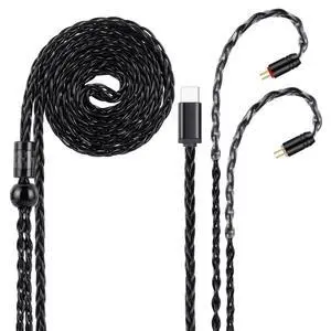 USB-C to Dual 2pin (0.78mm) IEM Balance Earbud Cable, 8-Core OCC Silver-Plated HiFi Earphone Cable, Ultra-Flexible Digital Audio Upgrade for in-Ear Headphones (1.3m, Black)