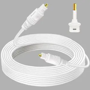 Bangun 60 feet White Optical Audio Cable, Slim Toslink Digital Fiber Optic Audio Cord for Sound Bar/TV/PS4/Xbox