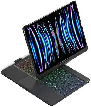 kaidisen 360 Rotatable Keyboard for iPad Air 11" (M3/M2, 2025/2024)/ Air 4th 5th Gen 10.9"/ Pro 11 4th 3rd 2nd 1st Gen Case with Touchpad 7 Color Backlight Foldable Backlit Keyboard,Black