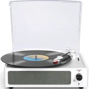 WOCKODER Vinyl Record Player with Speakers Turntable Belt-Driven Turn Table Support 3-Speed 3 Size BT Wireless Playback Headphone AUX-in RCA Line LP Phonographs Audio for Beginner Classic Pure White