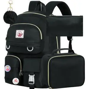 WZLVO Laptop Backpack for Girls Women, 15.6" Cute Aesthetic Computer Water Resistant Anti Theft College School Bookbag with Lunch Box for Teens Students - Black