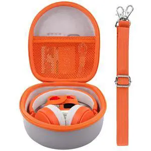 Baval Storage Case Compatible with YOTO Mini (2024 Edition) Kids Screen-Free Bluetooth Audio Player+ Wired Headphones Bundle(Gray Case,Orange Zipper)