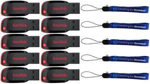 SanDisk Cruzer Blade 32GB (10 Pack) USB 2.0 Flash Drive Jump Drive Pen Drive SDCZ50-032G - Ten Pack Bundle with (5) Everything But Stromboli Lanyard