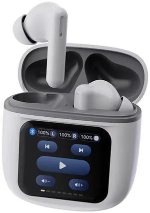 Xmenha ANC Earbuds Touchscreen Bluetooth Earphones Wireless Active Noise Cancelling Wireless Bluetooth with LCD Touch Screen Display Case Earbuds