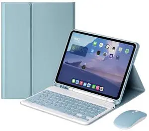 AnMengXinLing Lovely Keyboard Case for iPad 9th/8th/7th Generation with Mouse,Case for iPad9 iPad8 iPad7 10.2 inch with Pencil Holder and Deatachable Keyboard Mouse, Sky Blue