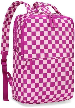 AMZFROG Checkered Backpack for Women Fashion Backpacks with Laptop and Multi Compartment for Travel and Work Rose Red Check