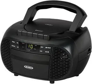 JENSEN CD-550BT-BK Portable Stereo Bluetooth CD Cassette Recorder with AM/FM Radio Compact Bluetooth-Enabled Radio Player with Handle Black