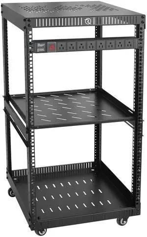 RIVECO OFCO 18U Network Rack with Reinforced Top & Bottom Vented Plates - 4 Rolling Wheels Floor Standing Rack for 19" Equipment & Stereo Gear - Including 1PCS Rack Shelf & Rail Mount PDU