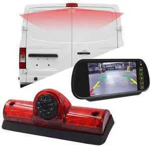 High Mount Rear Light Lamp Rear View Reverse Camera Parking Camera+7" LCD Screen Mirror Replacement for Nissan NV 1500/2500/3500 S SV SL Cargo Vans Transporter 2011-2021