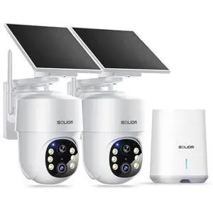 SOLIOM- 5MP Security Cameras Wireless Outdoor, No Subscription & Solar Powered,2-Cam Pack Home Security Camera with 360 Auto Human Motion Tracking, 3K Color Night Vision,5G & 2.4G Router Compatible