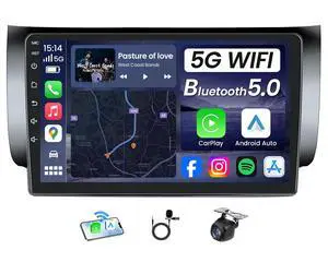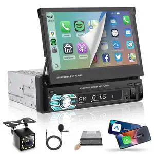 Single Din Car Stereo Radio with Carplay Android Auto,7 Inch HD IPS Manual Touch Screen,5.0Bluetooth Car Stereo with Backup Camera,GPS,Mirror Link,SWC,EQ,Airplay,Android Cast,Fast Charging,AUX/2.0 USB