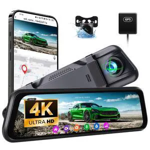 CAMECHO 9.66" 4K Mirror Dash Cam with ADAS, BSD and LCA, Rear View Mirror Camera with WiFi and GPS, Touch Screen Rearview Mirror Backup Camera, Night Vision, G-Sensor, Reverse Assist