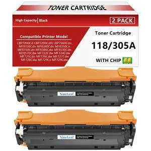 NineLeaf 305A 118 Black Toner Cartridge Replacement Compatible for HP 305A Also Compatible for Canon 118 Work with MFP MF8580CDW MF8350CDN MF8380CDW and MF726CDW LBP7660CDN LBP7200CDN Printer, 2 Pack