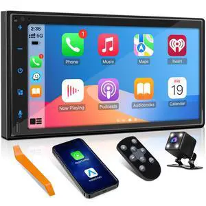 Double Din Car Stereo with Carplay and Android Auto, 7 Inch Touchscreen Car Radio Car Audio Receivers with Mirror Link Backup Camera Input Steering Wheel Control FM EQ USB/AUX/TF Bluetooth
