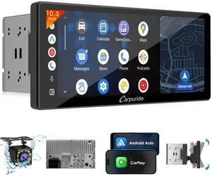Single Din Car Stereo with Apple CarPlay & Android Auto, 6.36 Inch HD Touch CarPlay Screen, Backup Cam,Bluetooth, USB Type-C, SWC, EQ, FM Radio (with External Mic)