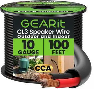 GEARit 10 Gauge Speaker Wire Cable,10 Gauge Wire CL3 Rated 100ft,Audio Cable with Red/Black Color Coded,Outdoor Speaker Wires for Home,Car,Outdoor,Patio,Garden,In-Wall,Backyard,CCA(Black,2-Conductors)