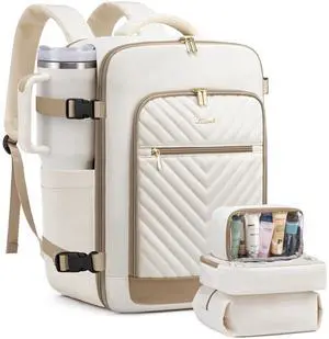 LOVEVOOK Travel Backpack For Women,40L Carry On Backpack Flight Approved,TSA Personal Item Travel Bag Fits 17 Inch Laptop,Weekender Overnight Daypack with Toiletry Bag and Cube,White Light-brown