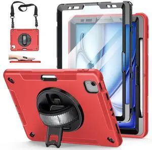 Case for iPad Air 11 M3 2025 & M2 2024: Cover for iPad Air 5th & 4th Generation 10.9 Inch (2020/2022) with Screen Protector- Stand- Handle- Shoulder Strap- Pencil Holder- Red