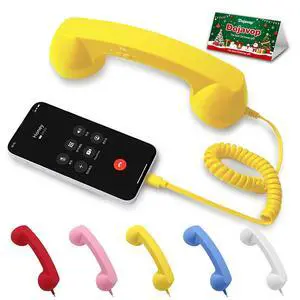 Retro Phone Handset Home Decor Aesthetic for iPhone Landline Rotary Phone for Home Pop Corded Telephone Handset for Cell Phones Connect to House Old School Vintage Telephone Receiver (Yellow)